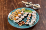 10 Uramaki salmão grelhado e 10 Uramaki de kani e cream cheese .